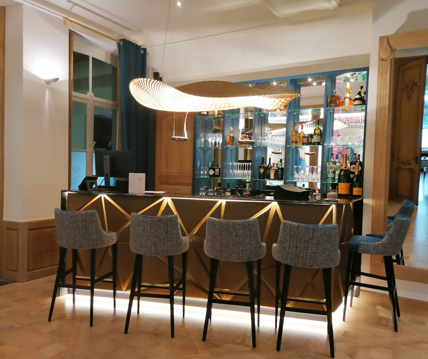 Cet habillage de bar est réalisé pour le Château des thermes à Chaudfontaine (Belgique).